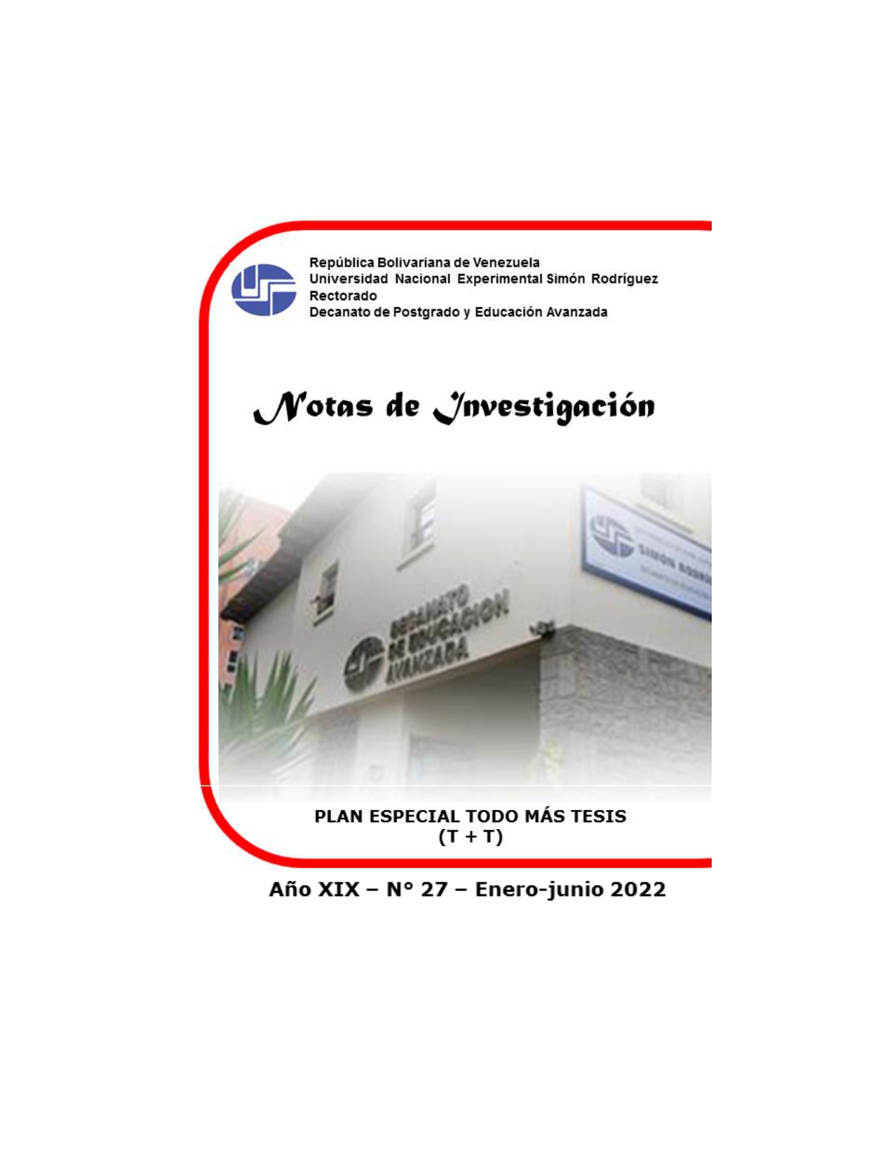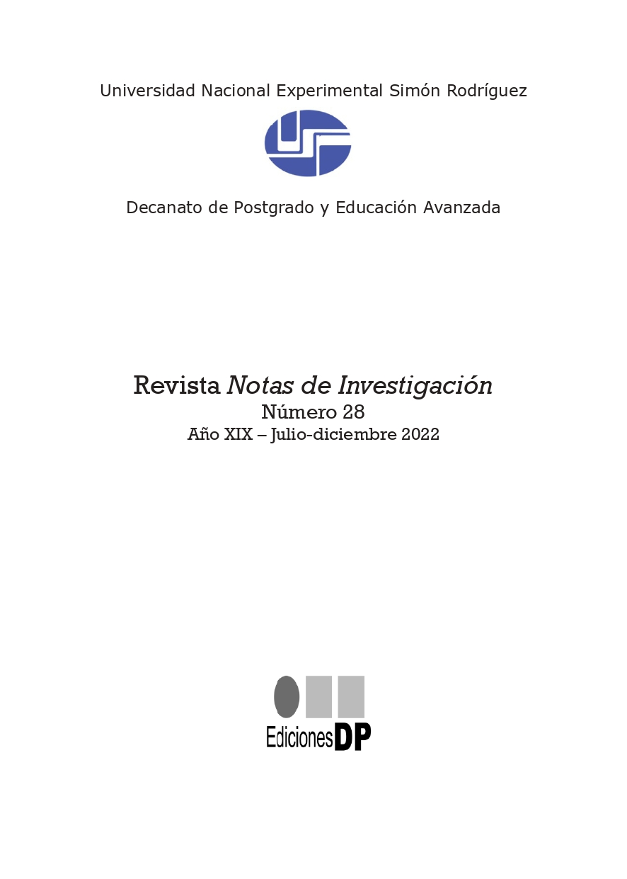 Vol. 28 Núm. 28 (2022)La revista Notas de Investigación es una publicación del Decanato de Postgrado y Educación Avanzada de la Universidad Nacional Experimental Simón Rodriguez, la cual promueve la difusión del conocimiento en educación y ciencias humanas, publica investigaciones en proceso y concluidas, ensayos, reseñas, ect, buscando fortalecer la formación y producción del conocimiento a nivel nacional e internacional.